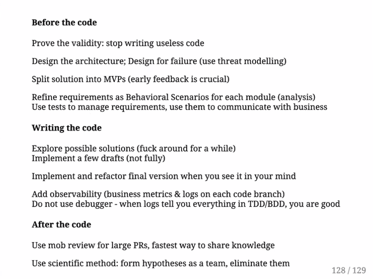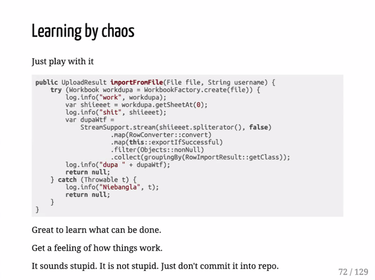 There’s a surprising lot of best practices that are irrelevant in practice. There are also those that do not sound like much, but I use them every single day and cannot imagine how I would deal without them. This talk is about those silent game-changers. I’ll talk about fixing bugs with a scientific method, how 7 years of implementing and operating microservices changed my observability practices, and how higher-order functions allowed me to not only express what’s important, but also put emphasis on it. And then we’ll talk a bit about neuroscience and how to deal with your own head. Perhaps it will work for you as well.
